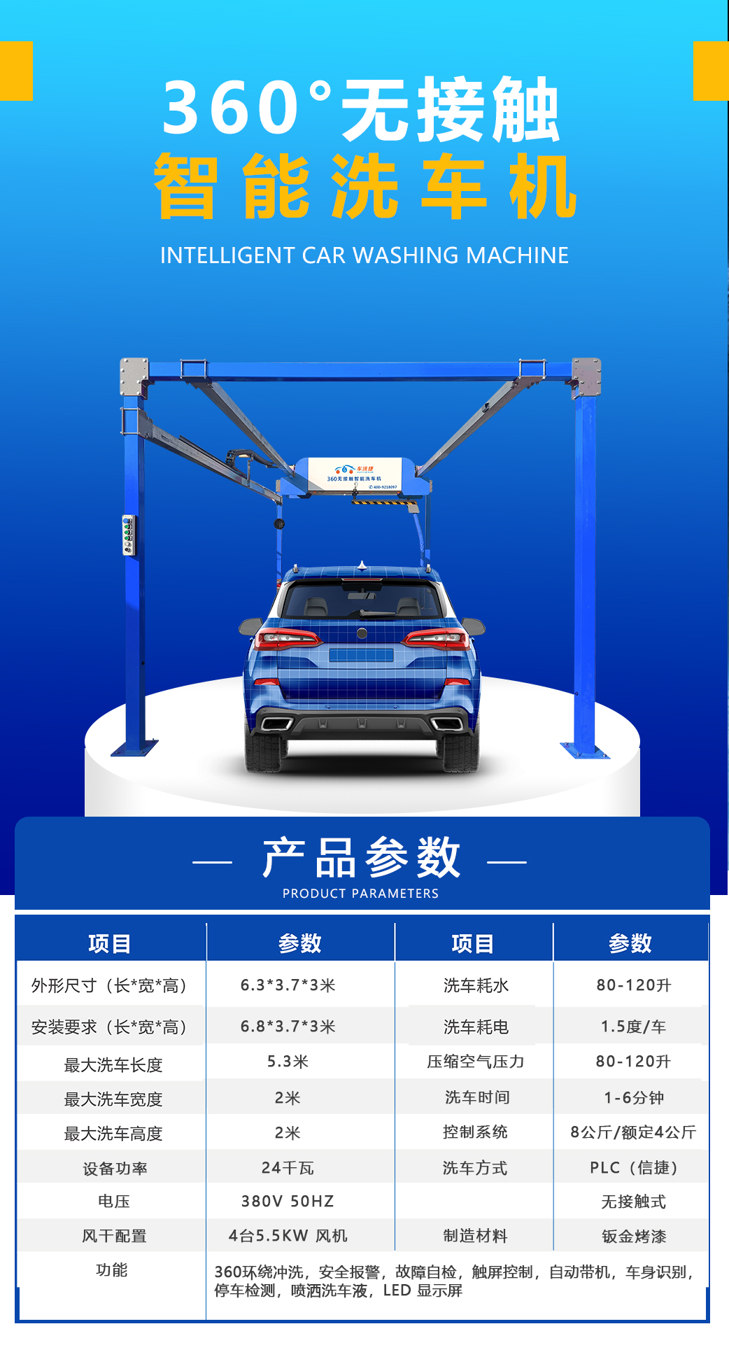 咨询:车洗捷风钻型无接触全自动洗车机